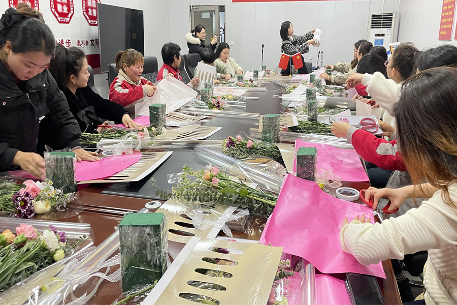 隨著春天的腳步漸近,我們迎來(lái)了屬于所有女性的特別日子——三八婦女節(jié)。為營(yíng)造濃厚的節(jié)日氛圍,提高婦女同胞的獲得感、幸福感和歸屬感,3月8日天元星組織開(kāi)展了“三月花開(kāi)女神節(jié),芳華綻放天元星”插花活動(dòng)。活動(dòng)中,大家將一束束鮮花、配草鋪在桌面上,一邊享受著花香,一邊構(gòu)思著自己想要設(shè)計(jì)的花型。大家從取材、剪葉開(kāi)始,左手持花,右手持剪刀對(duì)鮮花進(jìn)行修剪,插入花泥中,逐步完成自己的花藝作品。活動(dòng)當(dāng)天,現(xiàn)場(chǎng)氣氛熱烈而溫馨。專業(yè)的插花老師向大家介紹了各種花卉的特點(diǎn)和插花技巧,學(xué)員們配合著老師開(kāi)始親自動(dòng)手嘗試,從一開(kāi)始的小心翼翼到后來(lái)的大膽創(chuàng)意、巧妙搭配,一幅幅造型各異、錯(cuò)落有致的花束伴隨著陣陣花香呈現(xiàn)在大家的眼前。低語(yǔ)交流,互換花枝,贊美夸贊,無(wú)一不透露出此刻的溫馨與放松,欣賞著通過(guò)自己雙手制作出來(lái)的花藝作品,所有人的臉上洋溢著喜悅的笑容。
